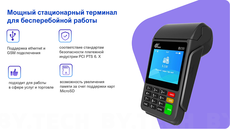 Совместимость с кассовыми системами. О совместимости терминала и кассовых систем можно узнать, написав нашим специалистам на электронную почту sales@bytechs.by