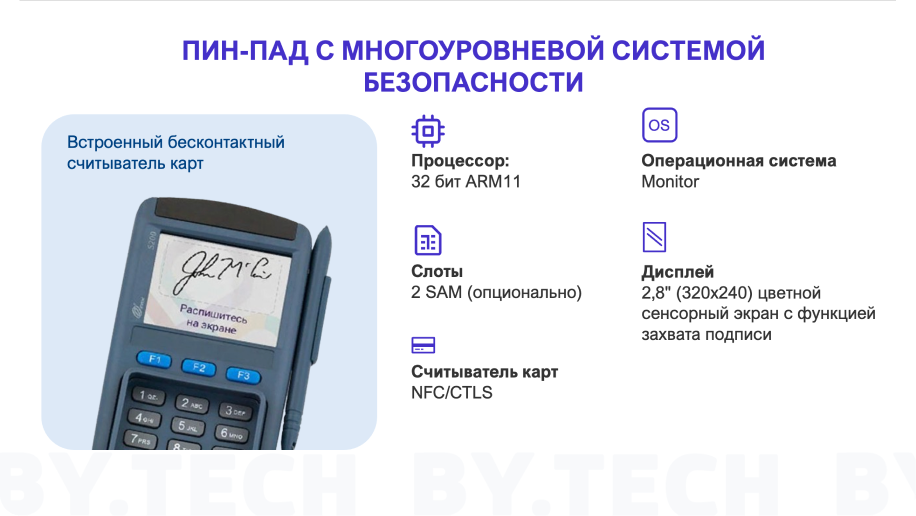 захват электронной подписи, встроенный бесконтактный считыватель карт, многоуровневая система безопасности