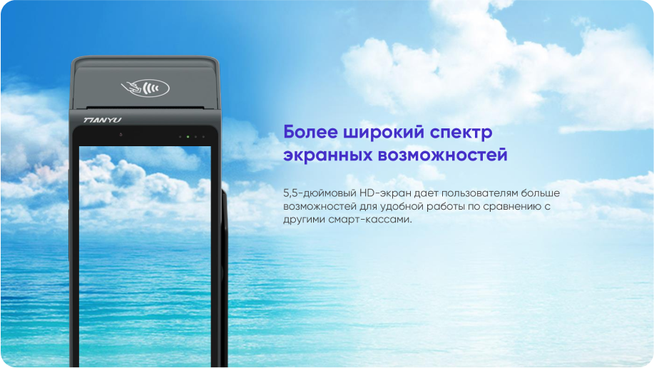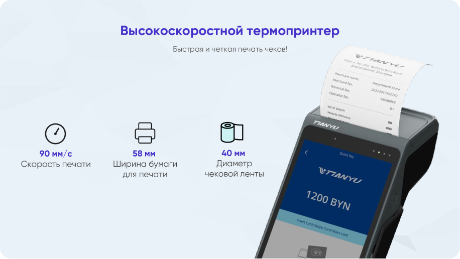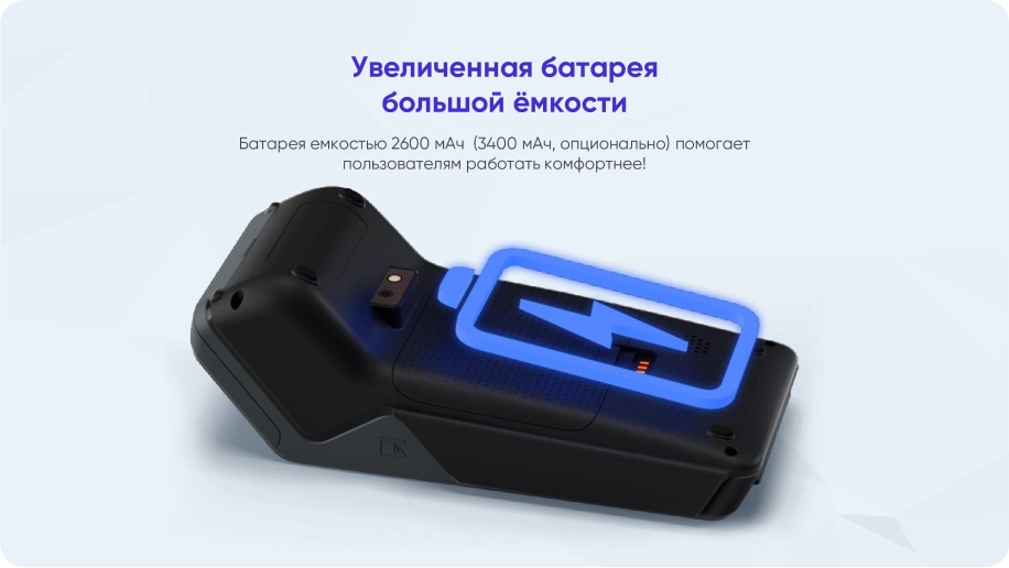 мощный процессор, высокоскоростной термопринтер, большая ёмкость батареи